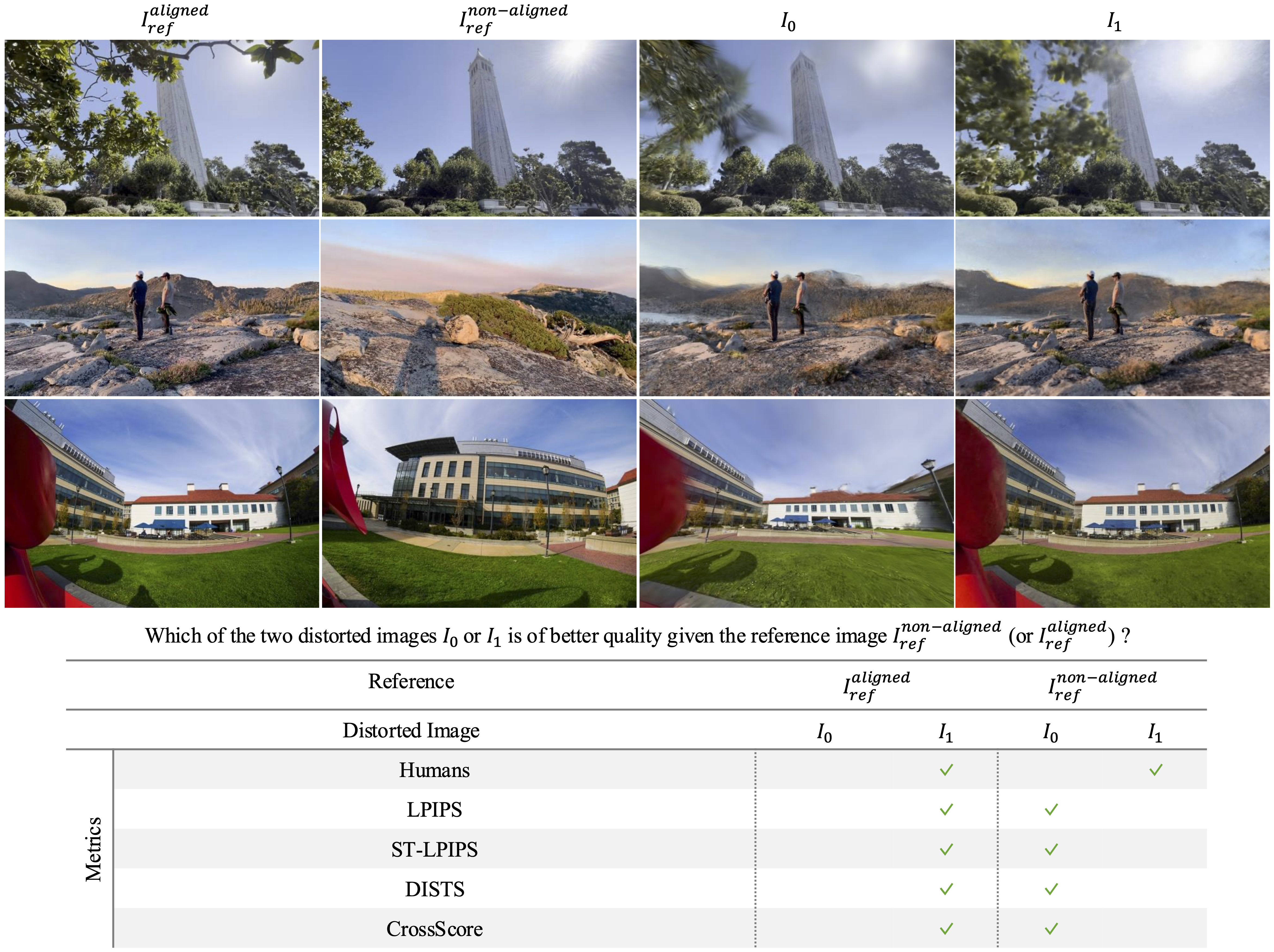 The NVS NAR-IQA Benchmark contains 1,035 curated triplets covering a wide variety of scenes, distortion types, and severity levels, providing a robust foundation for perceptual quality evaluation under non-alignment.